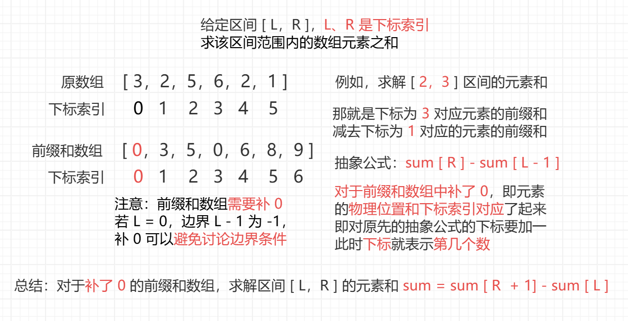 // 注意:sum 数组基于一位前缀和模板,采用 n + 1 的长度,0 位置不用