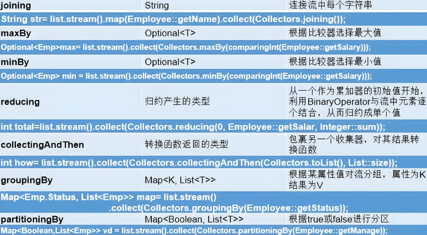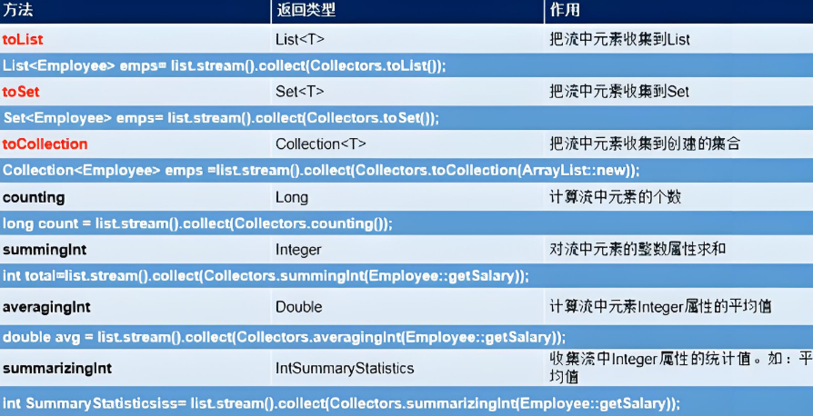 方法调用: collect ( Collectors . 调用方法名 )