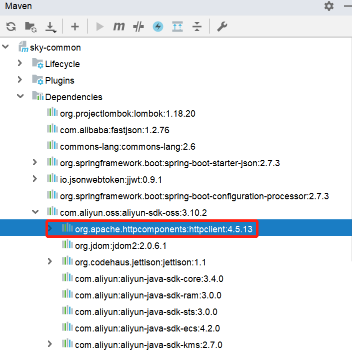 因为在项目中已经引入了 aliyun-sdk-oss 坐标,通过依赖传递,已经包含了 HttpClient 相关依赖