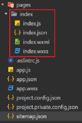 会存放在 pages 目录,每个小程序页面主要由四个文件组成