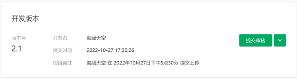 需提交审核,变成审核版本,审核通过后,进行发布,变成线上版本