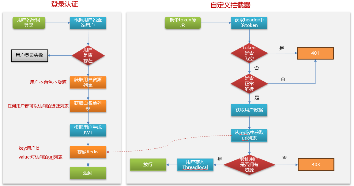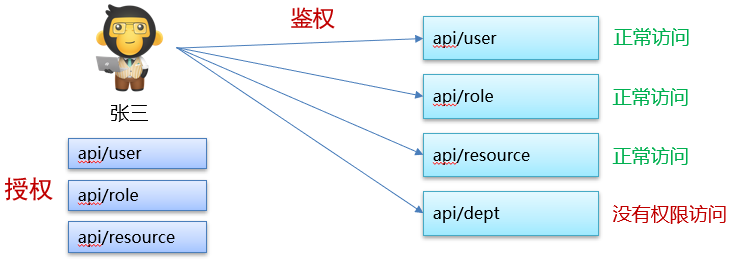 鉴权:用户通过认证并被授权后进行的一道安全检查,判断用户是否有权利执行或访问该资源(校验资源)