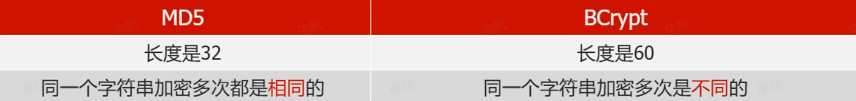 特点:不可逆,唯一性,BCrypt 对于同一个字符串加密多次是不同的,主要是因为添加了随机盐(随机字符串),更加安全