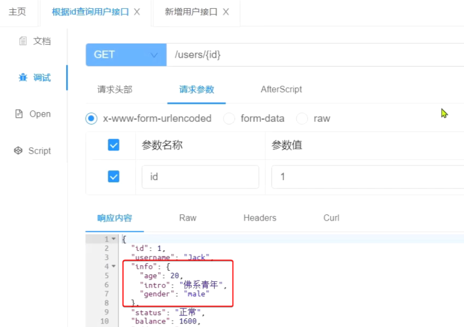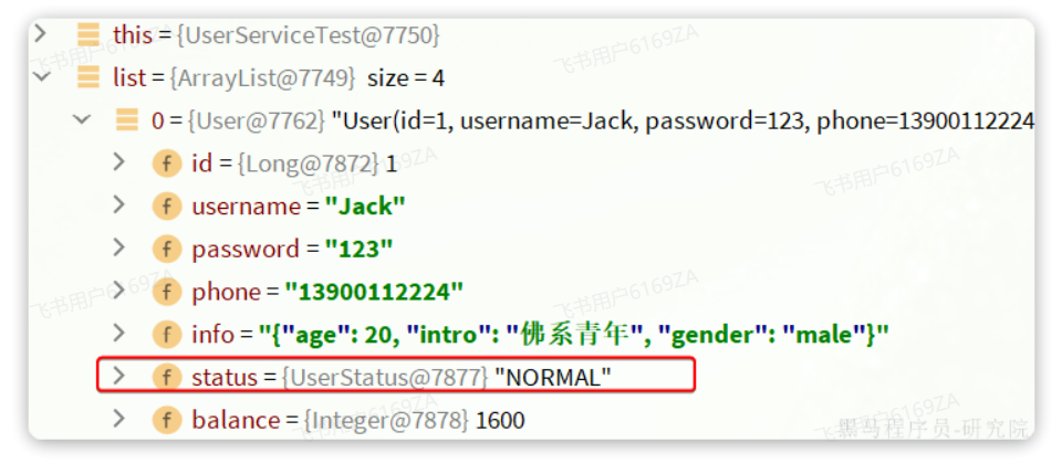 (1, 'Jack', '123', '13900112224', '{"age": 20, "intro": "佛系青年", "gender": "male"}', 1, 1600, '2023-05-19 20:50:21', '2023-06-19 20:50:21'),