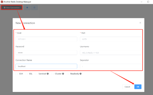 启动服务端,打开工具,连接 Redis