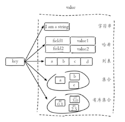 Redis 存储的是 key-value 结构的数据,其中 key 是字符串类型,value 有 5 种常用的数据类型