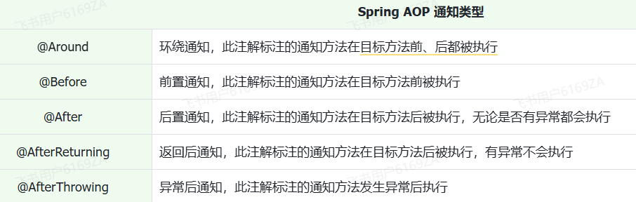 (1)通知指的是方法中需要实现的一些重复逻辑,也就是共性功能(最终体现为一个方法)