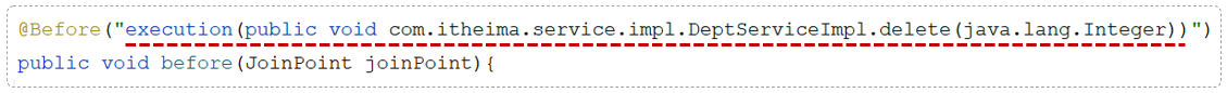 execution(void com.itheima.service.impl.DeptServiceImpl.delete(java.lang.Integer))(2)使用 * 代替返回值类型