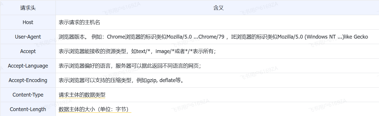 - 请求头(以上图中黄色部分)