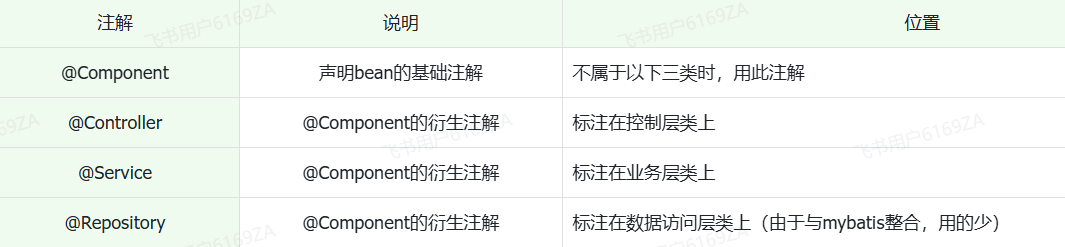 (2)使用以上四个注解都可以声明 bean,但是在 springboot 集成 web 开发中,声明控制器 bean 只能用 @Controller