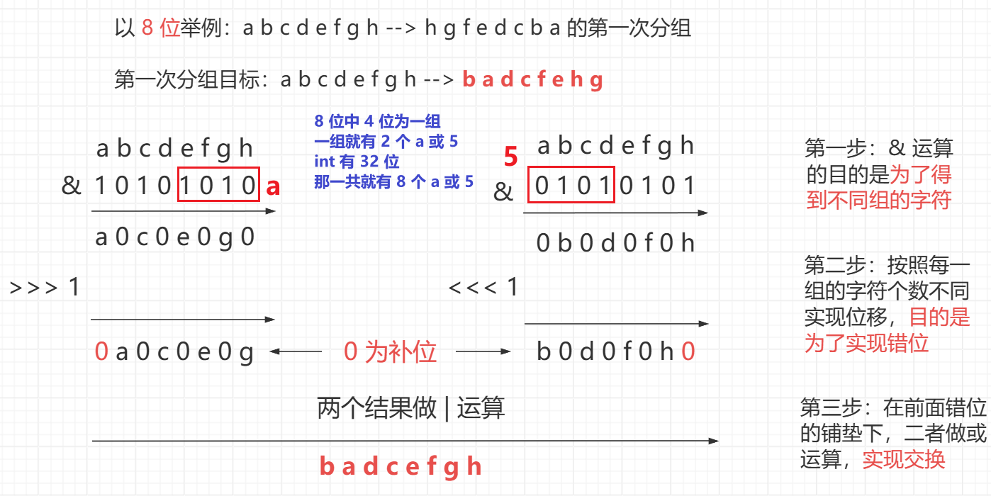// & 运算的目的是为了获取不同分组的数,为交换做准备