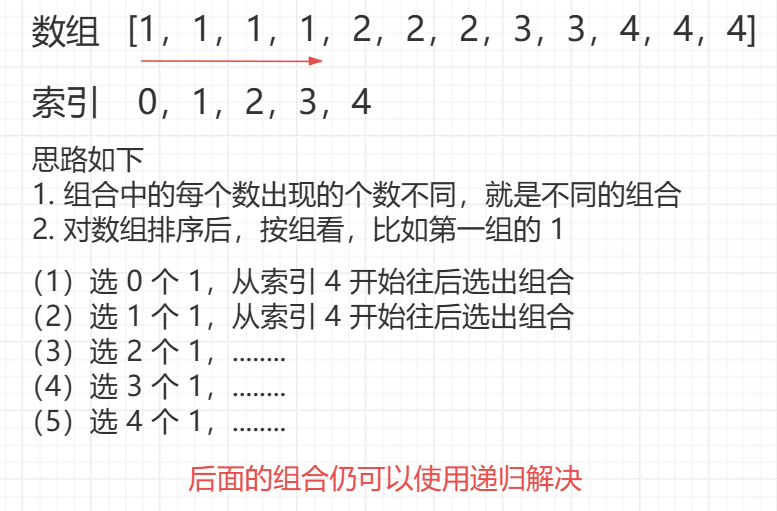如何区分不同的组合?组合中的每个数出现的个数不同,就是不同的组合