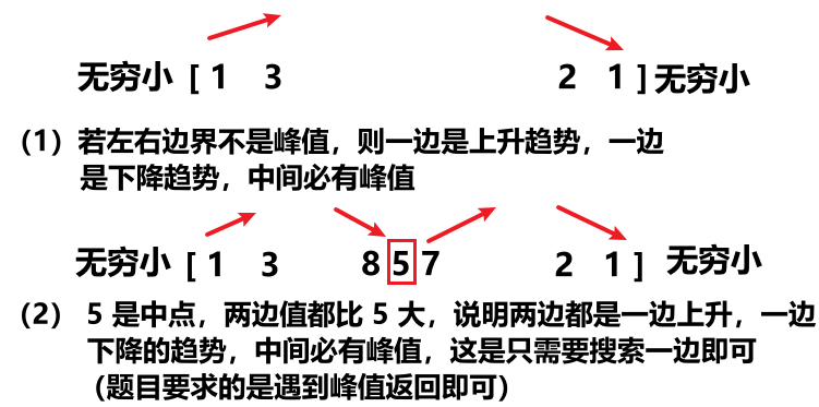 // 中点左边、右边的值都比中点小,中点是峰值