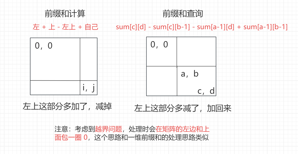 // 计算二维前缀和:左 + 上 - 左上 + 自己