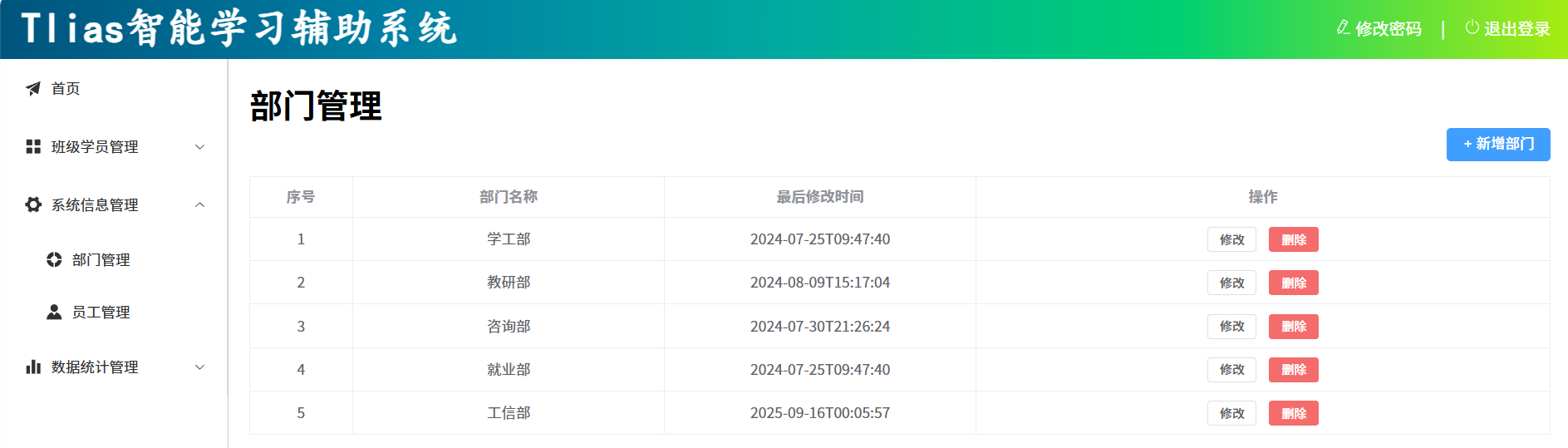 export const queryInfoApi = (id) => request.get(`/depts/${id}`);(2)在 src/views/dept/index.vue 中添加根据 ID 查询回显的逻辑,为修改按钮绑定事件 <template></template>