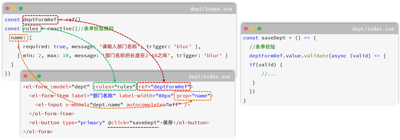 <el-form :model="deptForm" :rules="formRules" ref="deptFormRef">