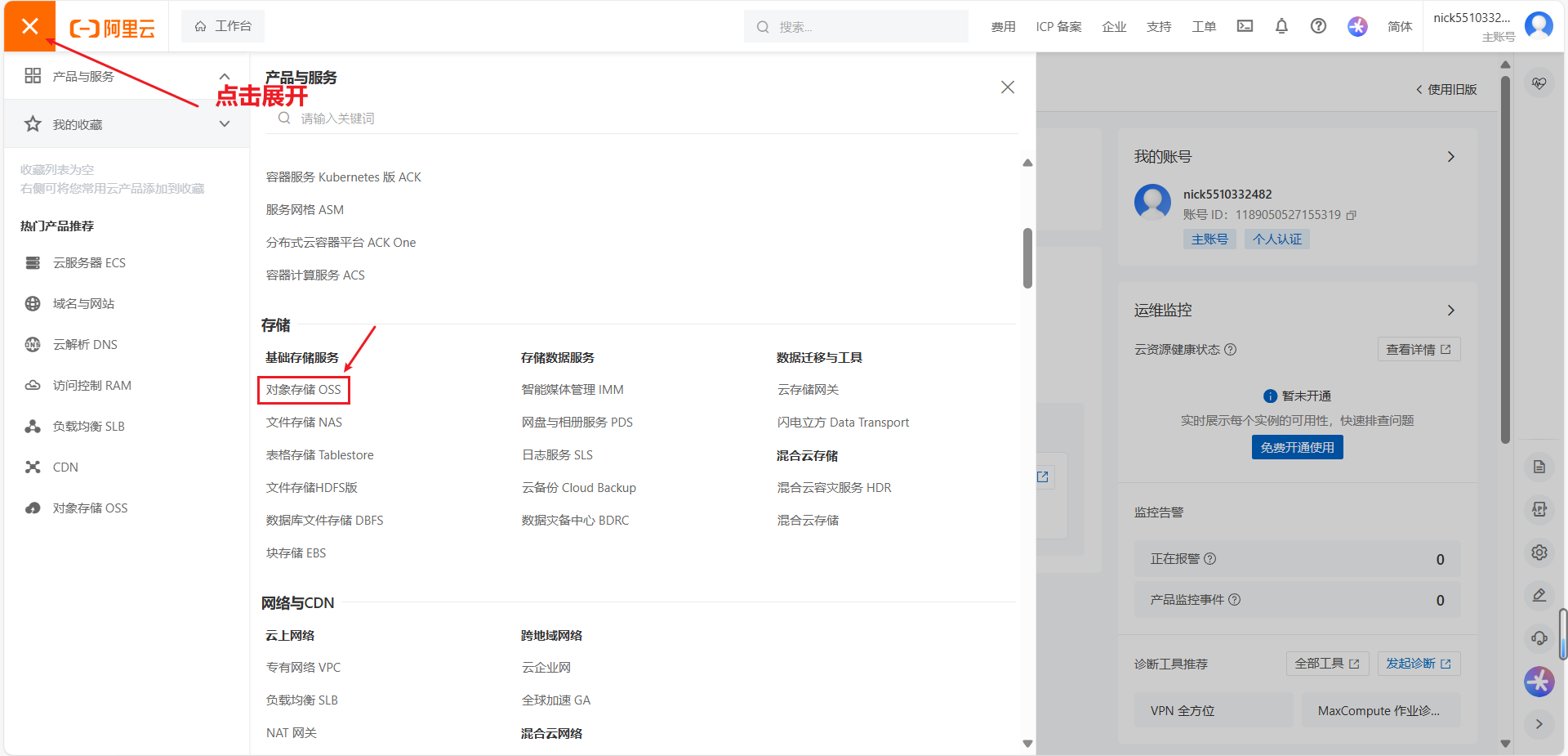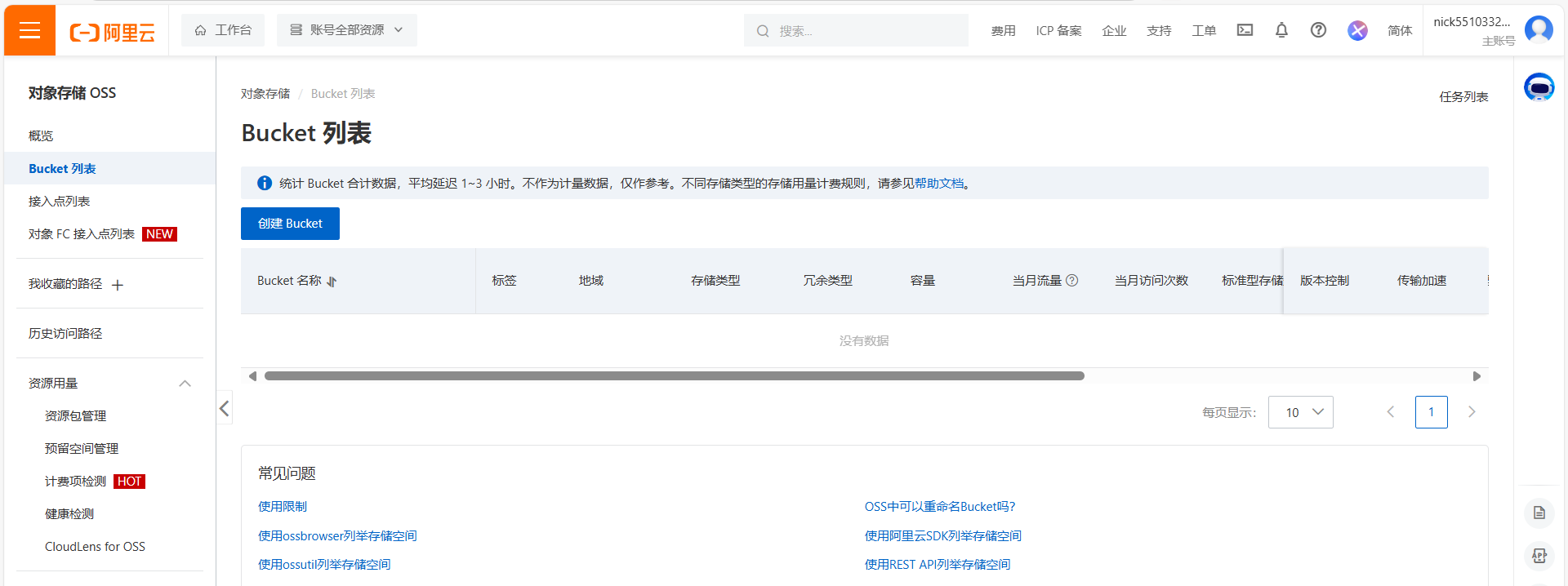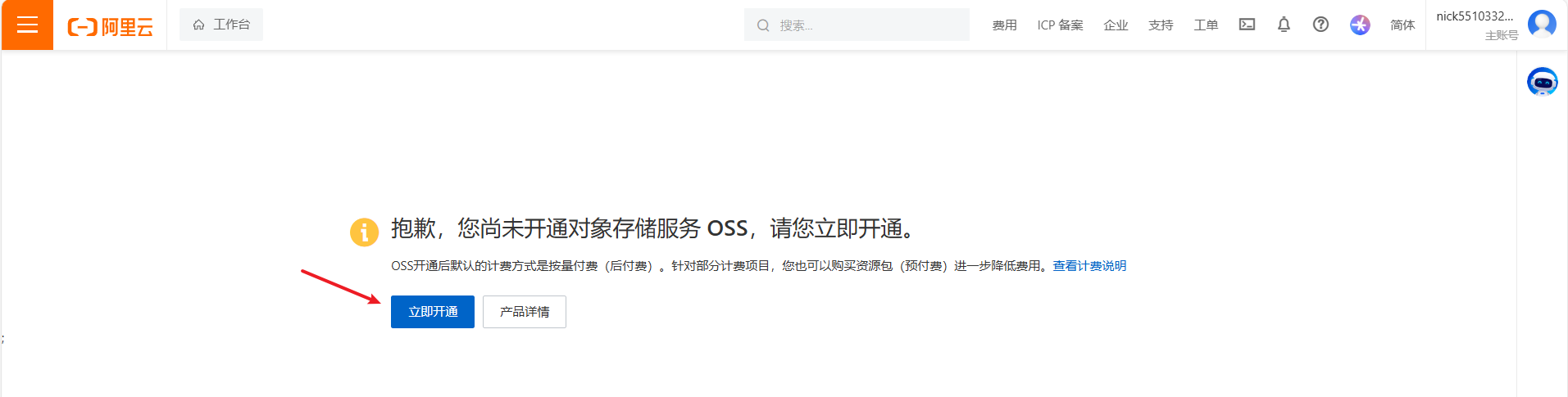 (3)开通 OSS 服务之后,就可以进入到阿里云对象存储的控制台