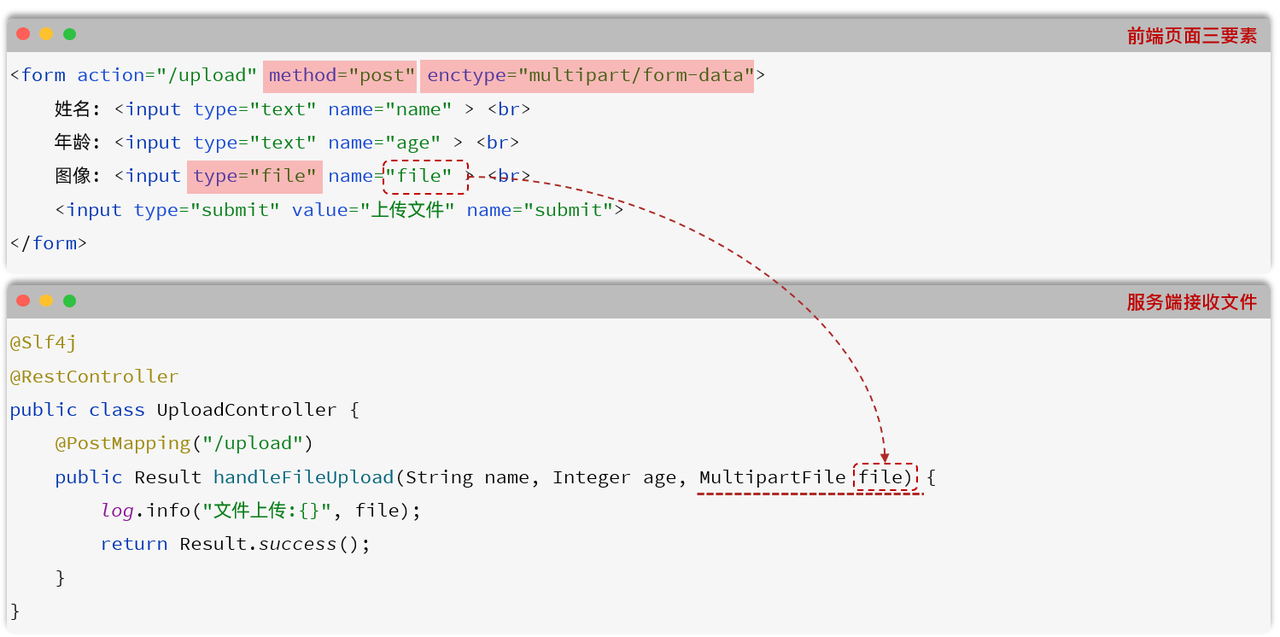 log.info("上传文件:{}, {}, {}", username, age, file);