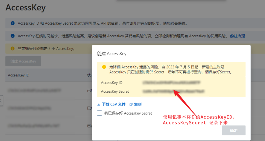 将上述的 ACCESS_KEY_ID 与 ACCESS_KEY_SECRET 的值替换成自己的