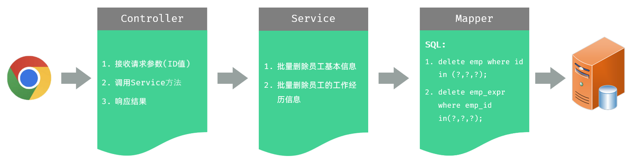 empExprMapper.deleteByEmpIds(ids);