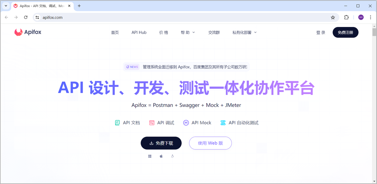 (1)介绍:Apifox 是一款集成了 Api 文档、Api 调试、Api Mock、Api 测试的一体化协作平台。