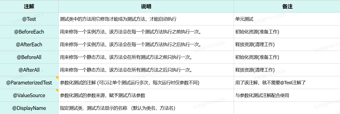 @AfterAll //该方法必须被static修饰