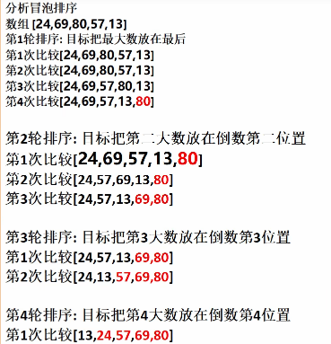 for循环:表示需要进行排序的轮次,即每一次都找出最大的数排在队尾,需要排序数组长度-1次才可以排完 2. 内层