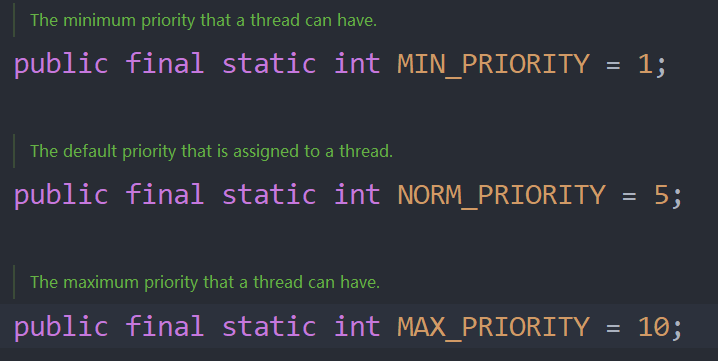 调用方法:setPriority(Thead . 优先级字段)