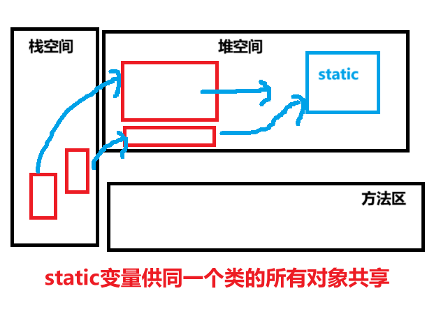 类加载的时候会在方法区创建一块空间(称为静态域),static 修饰的变量存储在其中