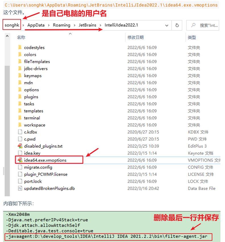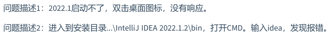 - 又因为最新的 IDEA,不兼容破解程序-javaagent:D:\develop_tools\IDEA\IntelliJ IDEA2021.2.2\bin\jetbrains-agent.jar 了,所以报错了,所以 JVM 结束了,所以没有启动画面,凉凉了