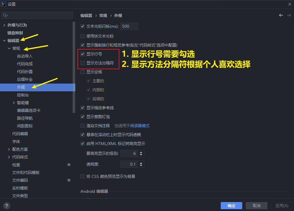 9. 显示行号与方法分隔符