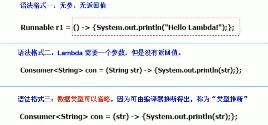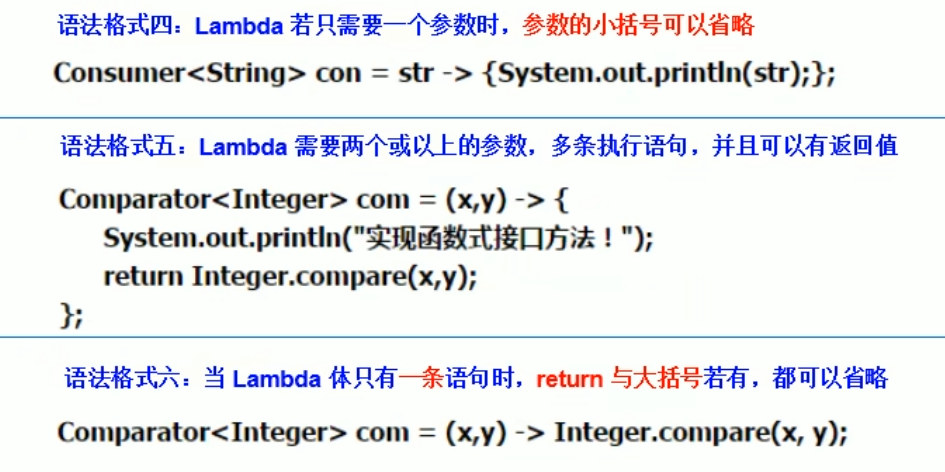 左边;lambda 形参列表(接口中的抽象方法的形参列表)