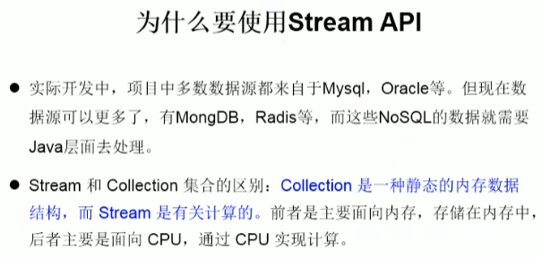 (1)Stream 关注的是对数据的运算,与 CPU 打交道